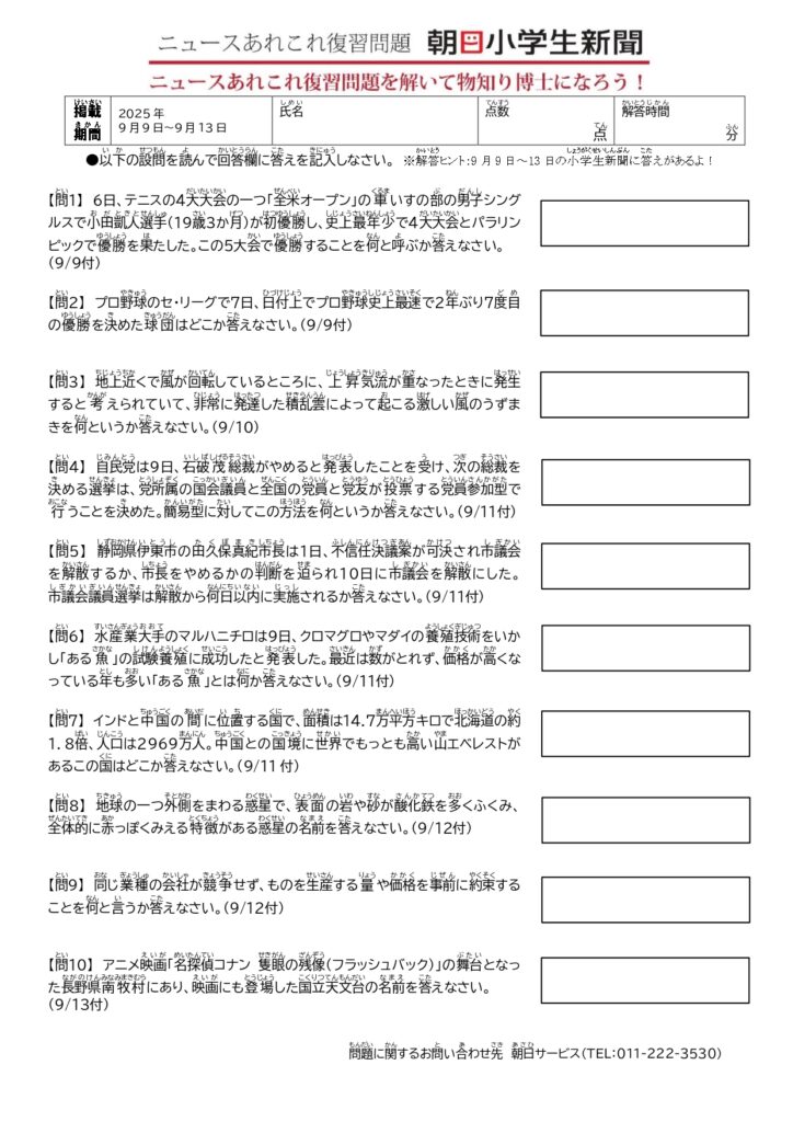 『ニュースあれこれ』は朝日小学生新聞(火〜土)でどうぞ!